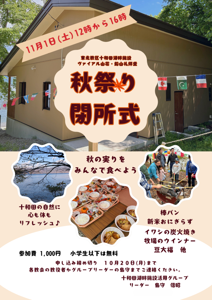 十和田湖畔施設活用グループより、秋祭りと2025年ヴァイアル山荘閉所式のお知らせです。